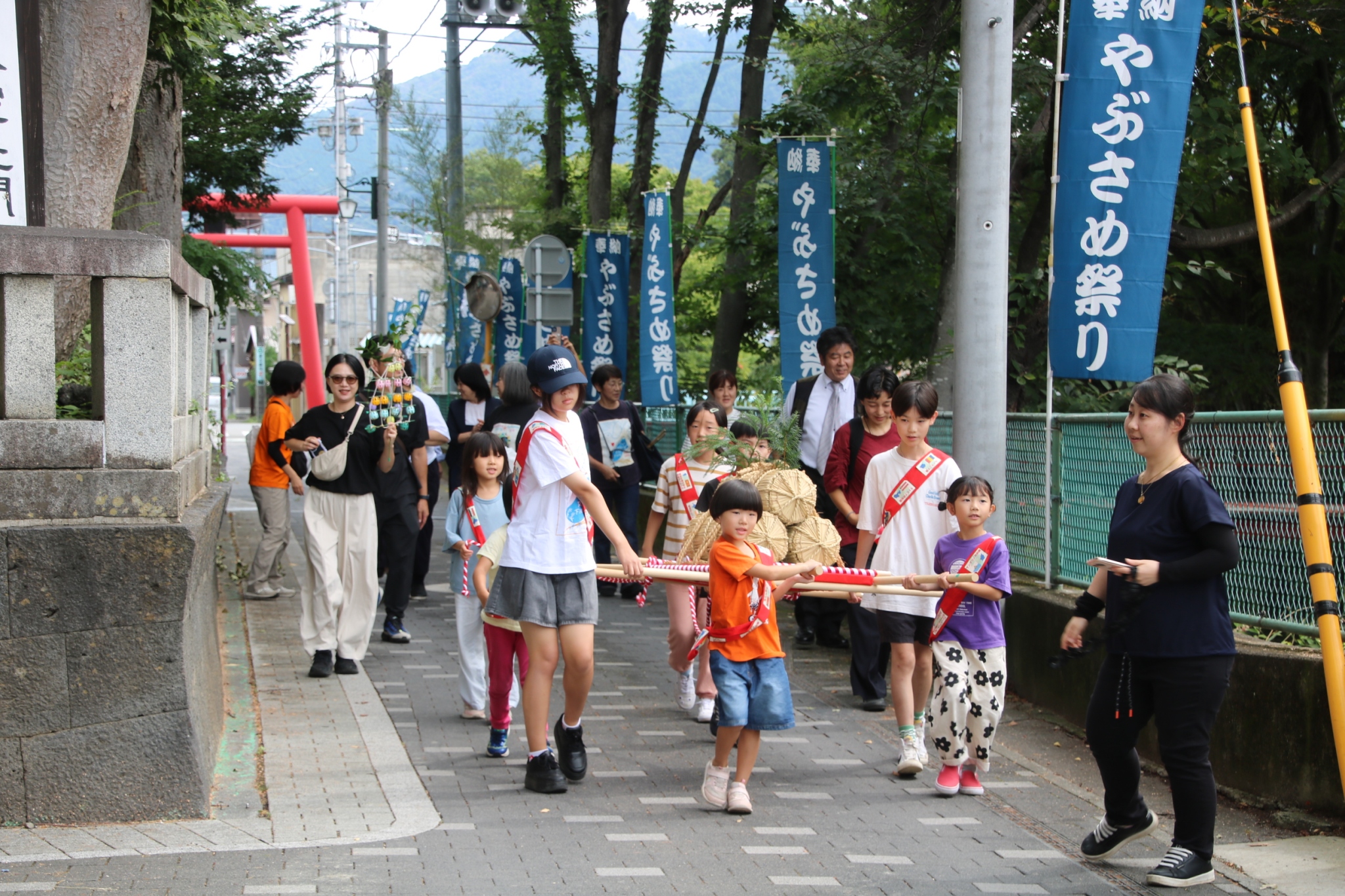2025年 9月14日(日)、24名のお子様にご参加いただき、真菰で作られた俵神輿二基と共に、